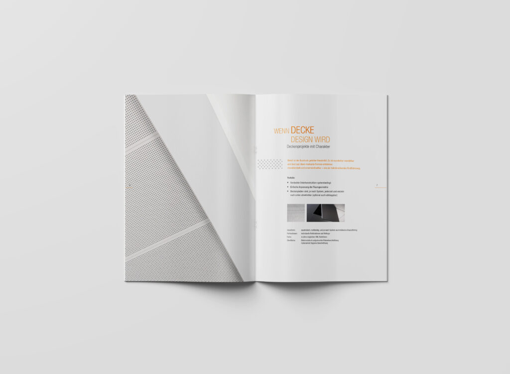 Somit konnten wir für die Zielgruppe interessante Darstellungen platzieren und den Bezug zum Produkt Metalldeckensysteme MODENA von AMF herstellen.