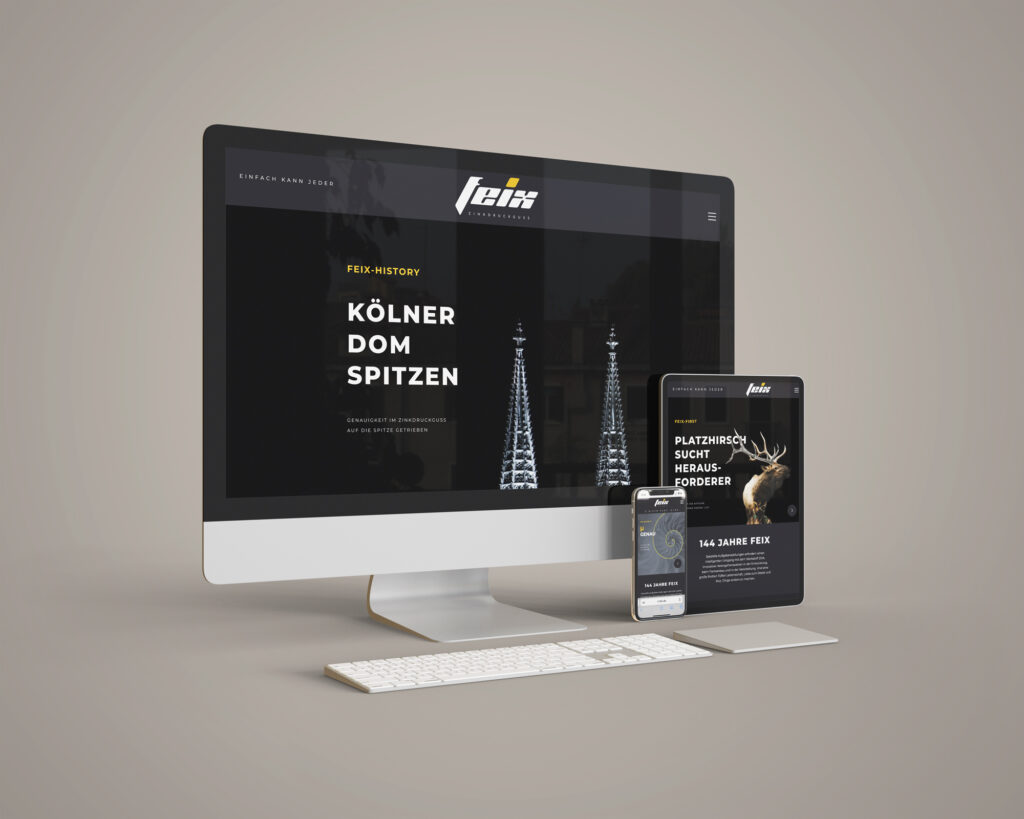 Freche Umsetzung in einem eher zurückhaltenden Produktfeld. Schwerpunkt auf die Feinheit der Arbeit des Unternehmens.